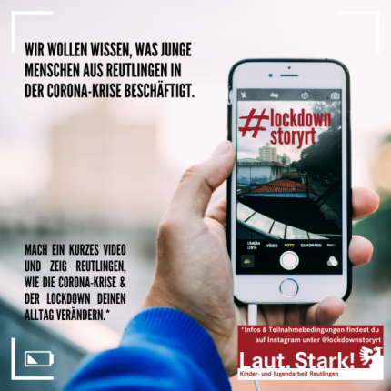 Die Pandemie hat unser Leben ganz schön auf den Kopf gestellt! Wir wollen wissen, wie es dir mit all dem geht! Mach ein kurzes Video und zeig Reutlingen, wie die Corona-Krise und der Lockdown deinen Alltag verändern. Du kannst selbst im Video zu sehen sein - muss aber nicht! Eine Foto-Story, Collage oder Texting-Story geht auch. Sei kreativ und überrasche uns! Unter allen Teilnehmer*innen werden 3 Reutlinger Gutscheine im Wert von 50€ verlost.* Ziel des Projektes ist, jungen Menschen eine Stimme zu geben und ihre Meinungen auch in die Stadtverwaltung und in politische Gremien weiterzutragen.